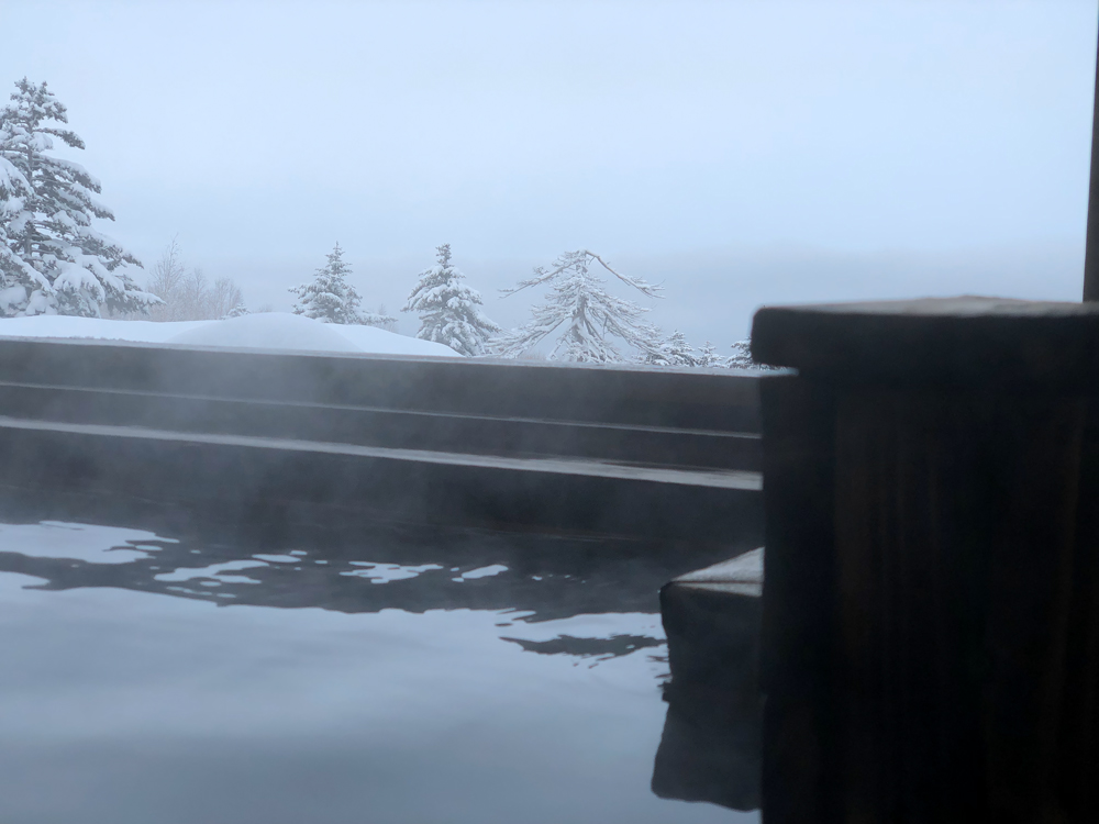 目に映るのは自然の山並み。耳に届くのは温泉が湯船へと流れ落ちる音。